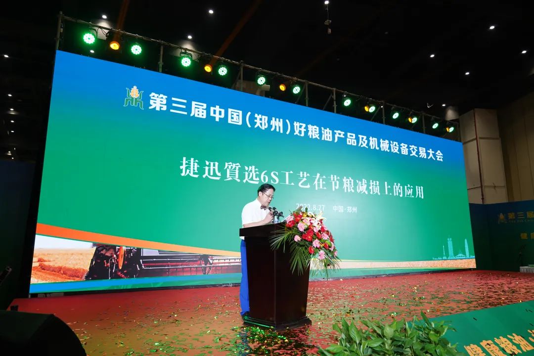 在開幕式上分享《捷迅質選6S工藝在節糧減損上的應用》