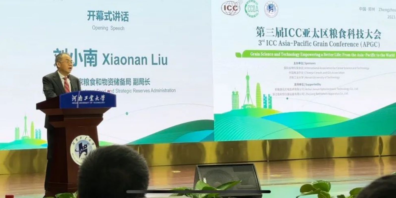 開幕式上,國際谷物科技協會(ICC)主席 Gerhard Schleining、中國糧油學會理事長盧景波 、國家糧食和物資儲備局副局長劉小南及主辦單位相關領導分別作開幕式致辭。