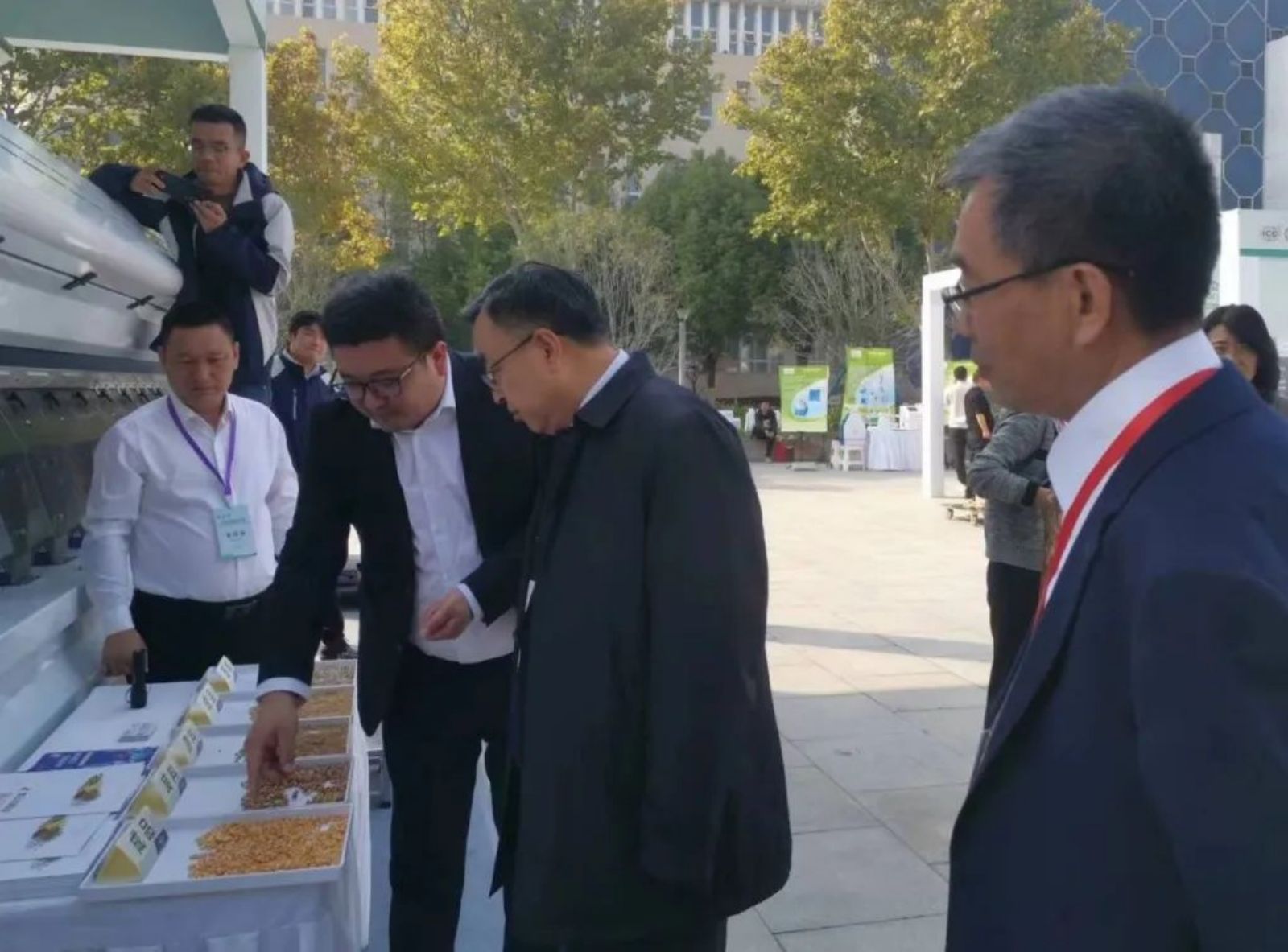 中國糧油學會盧景波理事長、張成志副理事長蒞臨捷迅展位,了解最新玉米小麥質選技術以及S+分析儀