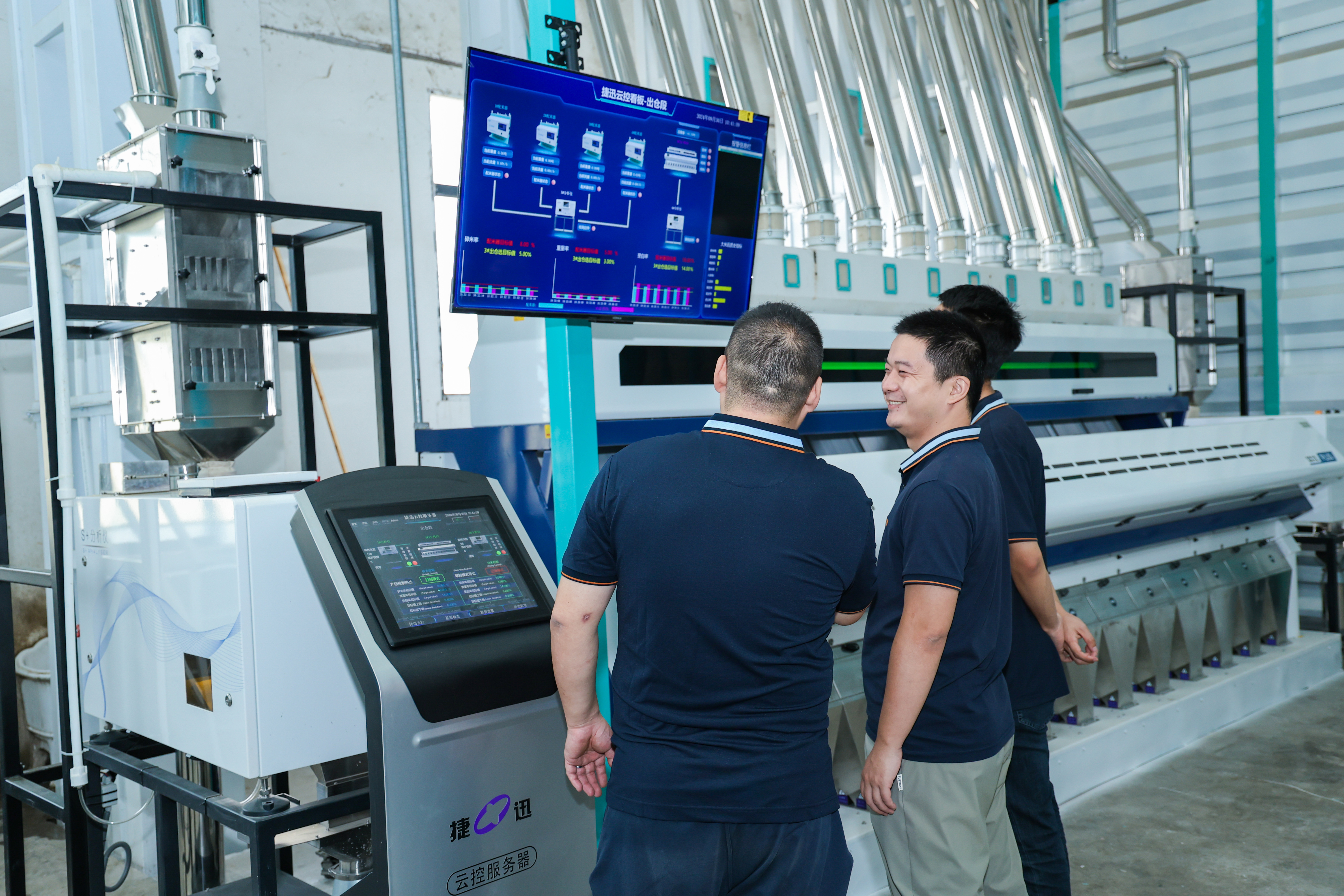 真云控 真能控!捷迅云控通過自主研發的S+智能分析儀及云控服務器協同,實時抓取大米糧食加工數據,主動進行設備操控,是業內唯一實現自動調控的糧食智慧加工解決方案。