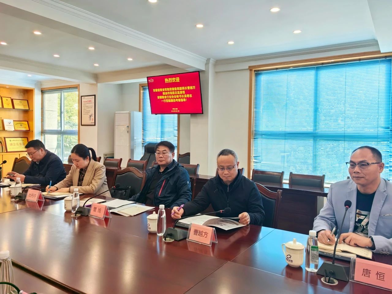 3月12日下午,安徽省糧食和物資儲備局副局長曹越方、安全倉儲與科技處二級調研員管旭、辦公室副主任杜丹丹、安徽省糧食行業協會秘書長吳奇志、糧油市場報新聞中心總監唐恒、高級記者朱振華等一行蒞臨捷迅開展調研。