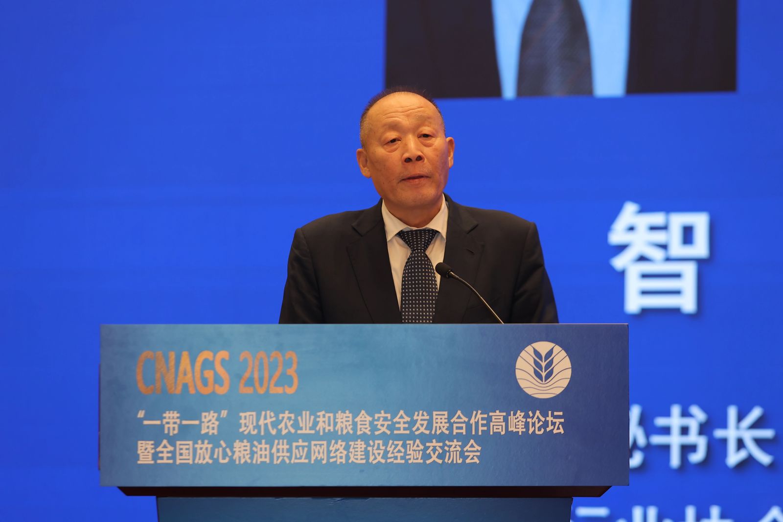 中國糧食行業協會副會長兼秘書長任智主持論壇嘉賓致辭環節并作主題為《加強交流合作 促進共同發展》的主旨演講
