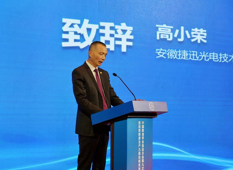 12月17日,中國糧油學會食品分會第九次會員代表大會暨培育新質生產力推動糧食加工科技創新研討會在合肥隆重召開。中國糧油學會理事長盧景波、安徽省糧食和物資儲備局黨組成員、副局長曹越方以及百余位糧食加工領域相關院校、科研單位、糧食生產企業代表出席參加,捷迅光電董事長高小榮出席會議并致辭。