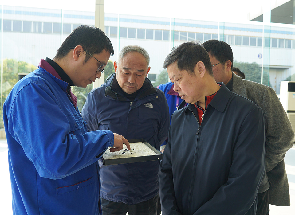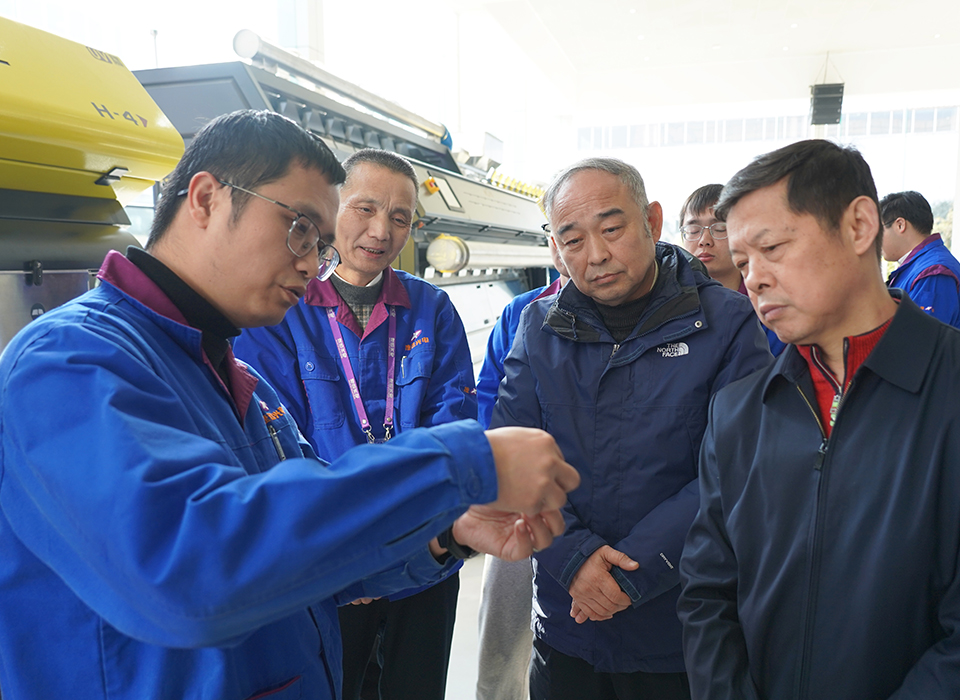 胡新明會長一行參觀了數字化生產車間、質選體驗中心,認真聽取了捷迅云控技術匯報,深入了解了捷迅質選技術,并結合湖北省糧食行業發展現狀,提出了許多針對性的建議與想法。
