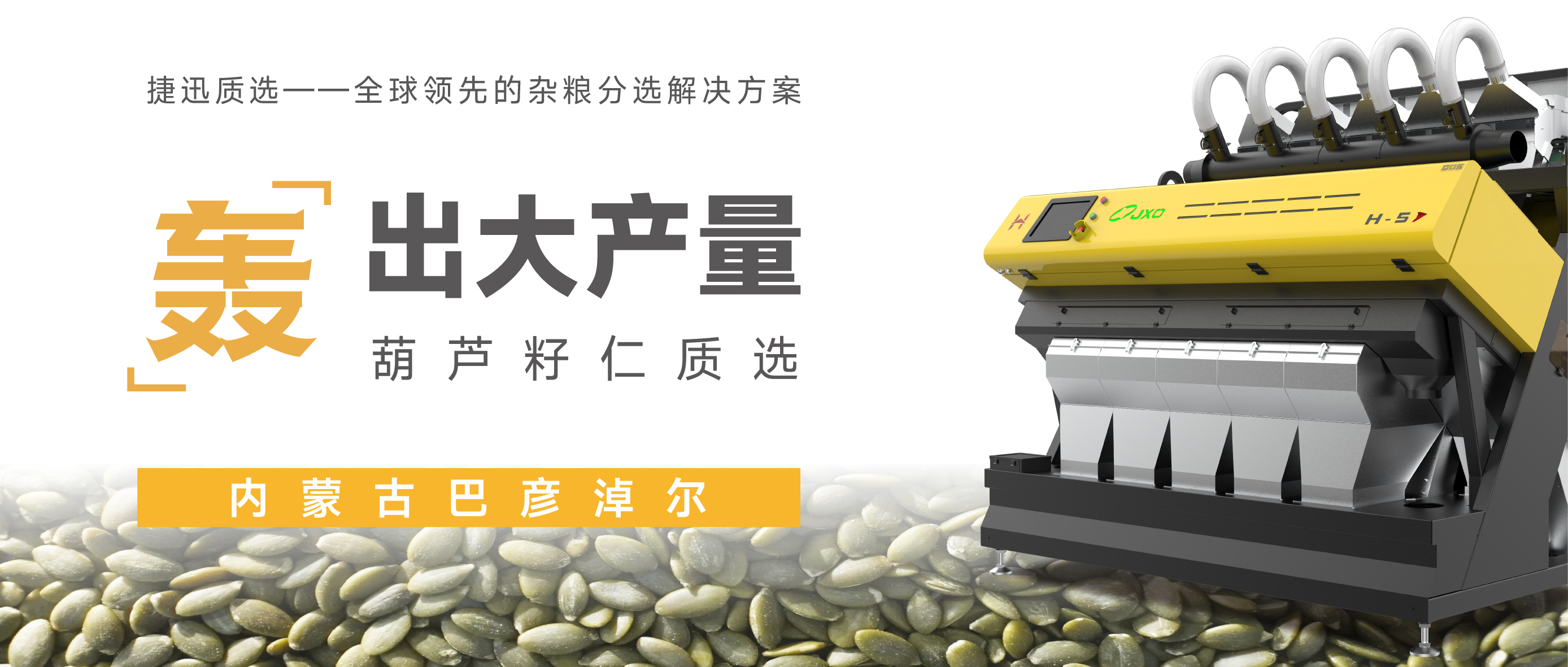 在AI質選大模型加持下,捷迅「轟」質選突破傳統葫蘆籽仁分選的技術瓶頸,實現了超高精度、超大產量的雙重提升,以“分級、高產、除雜、低耗”的產品優勢,全面領跑市場。